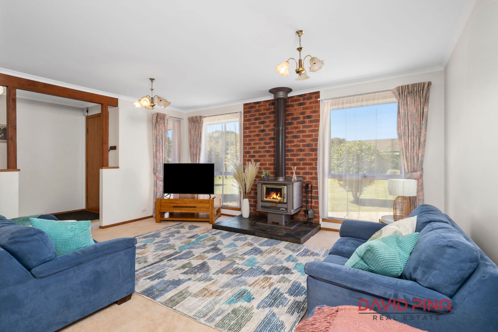 Set on a spacious level block spanning over half an acre this property is meticulously maintained and thoughtfully presented. It's a property not to be overlooked. The layout includes three ample bedrooms with built-in robes, a family bathroom with separate toilet, a laundry with outside access, and a lounge boasting the warmth of a wood fire, perfect for chilly evenings. The kitchen offers a breakfast bar, pantry, gas hotplates, electric oven, rangehood, and a view of the large north-facing backyard.