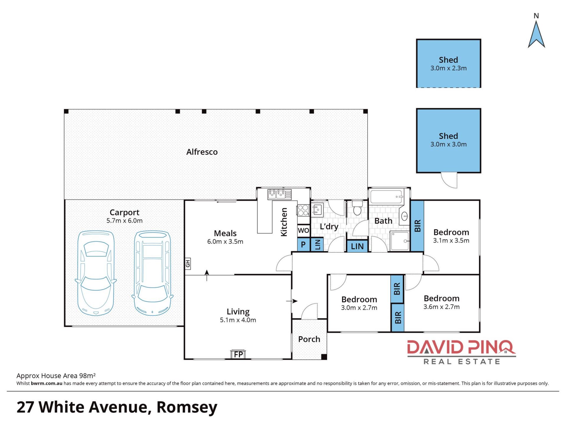 Conveniently situated adjacent to the Romsey Golf Course and just a short walk to Romsey Primary School, this property also features gas heating, concreted driveway, double carport with drive-through and side access, garden shed on a slab, and a fenced garden area. This is a delightful property with loads of potential in an excellent location. Consider setting your sights on White for your next investment or your new home!