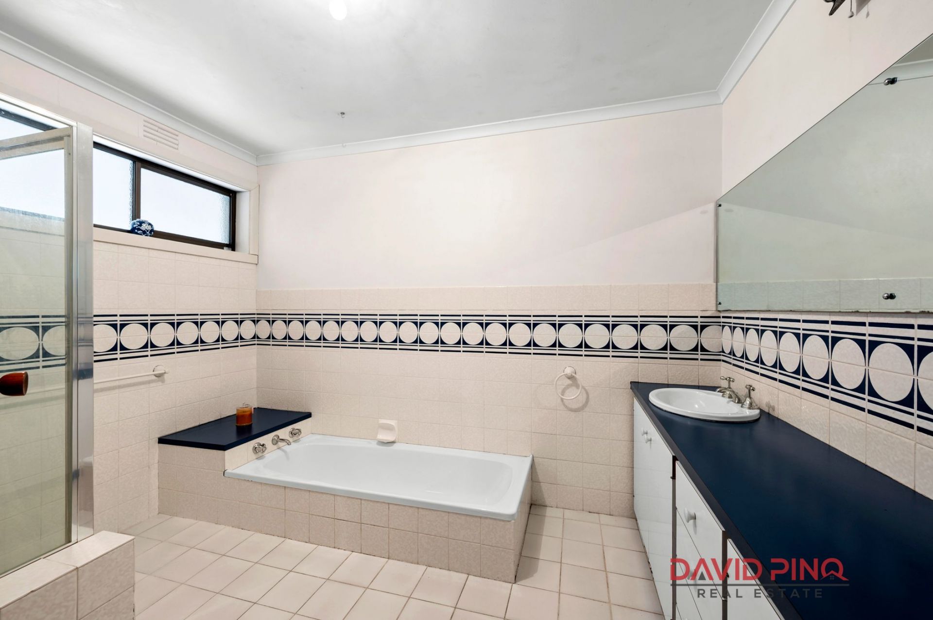 Main bathroom with separate bath and shower, plus private powder room