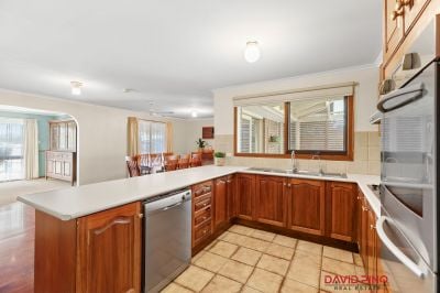 The kitchen is practical and functional, featuring an electric oven, gas hot plate, dishwasher, built-in pantry, and breakfast bar, flowing seamlessly to the dining and living areas. The living area includes a gas heater, ceiling fans, carpeted floors, and an air-conditioning unit, providing comfort all year round.
