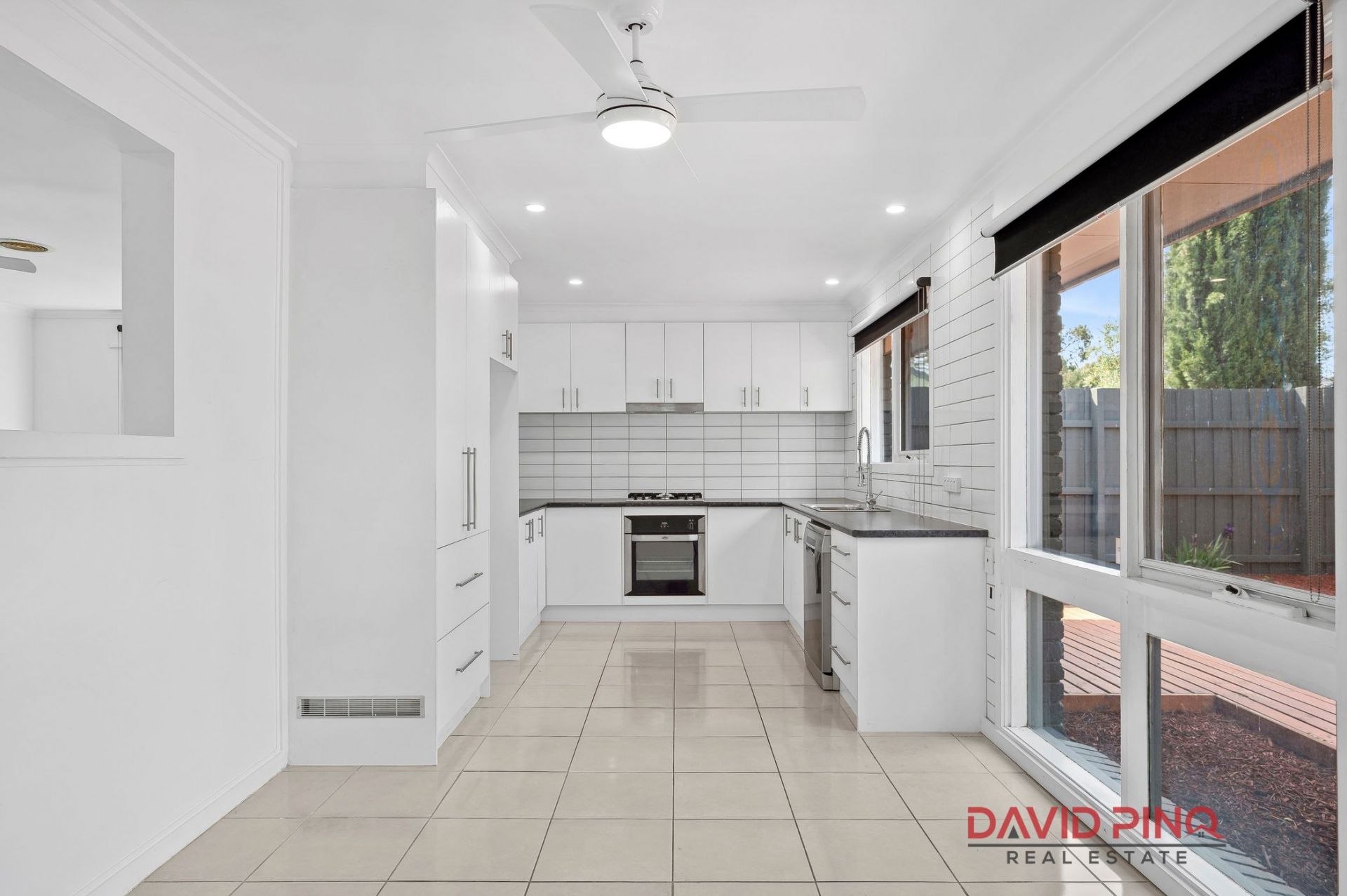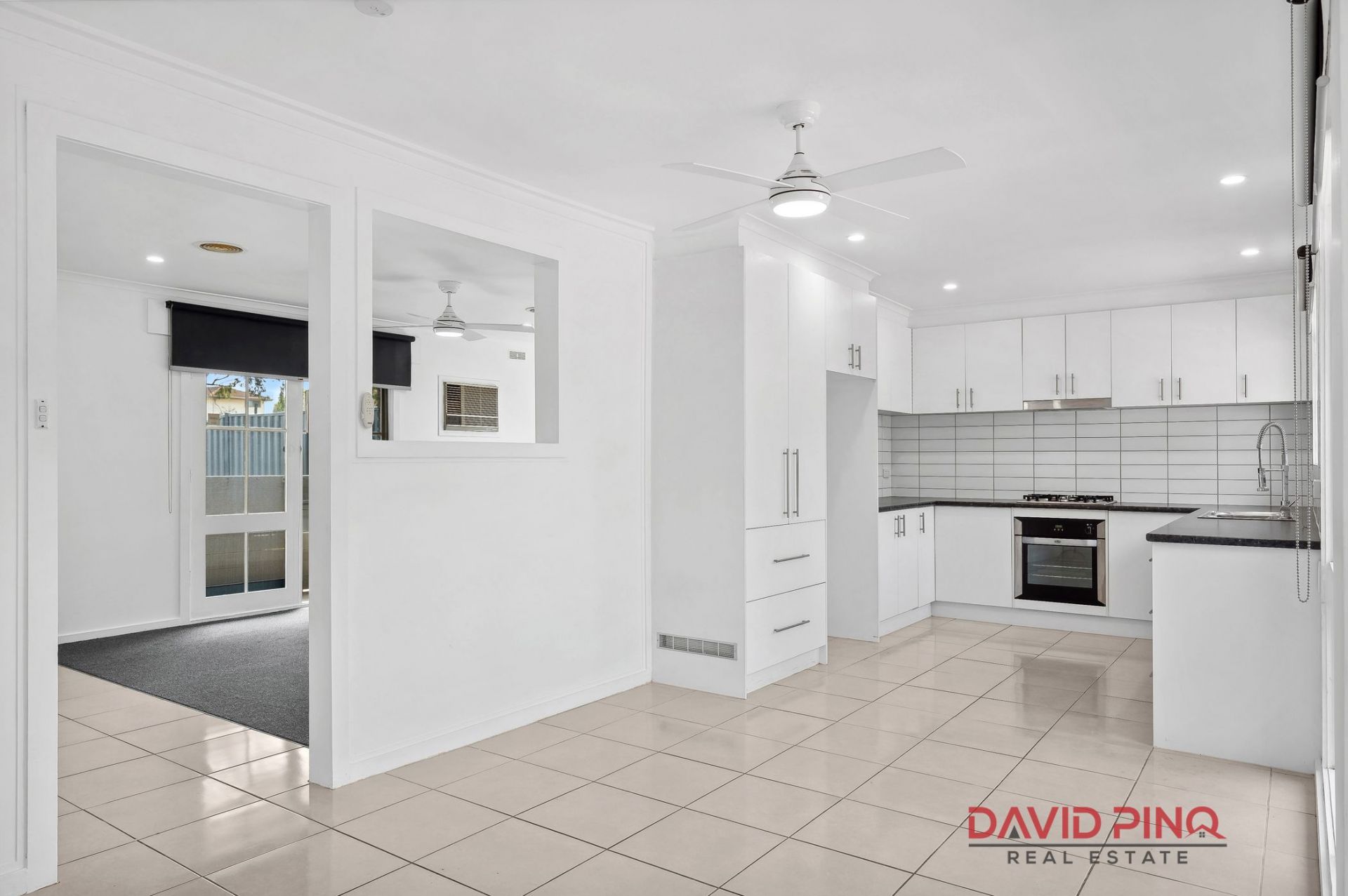 As you step inside, tiled floors greet you, flowing seamlessly through the entrance, dining area, and living, offering a sleek, polished look. The lounge, carpeted and cozy, is the perfect spot to unwind with its ceiling fan creating a relaxing breeze. The modern kitchen is a dream for home chefs, featuring a nearly-new hotplate, oven, dishwasher, and double sink, making cooking and entertaining a breeze.