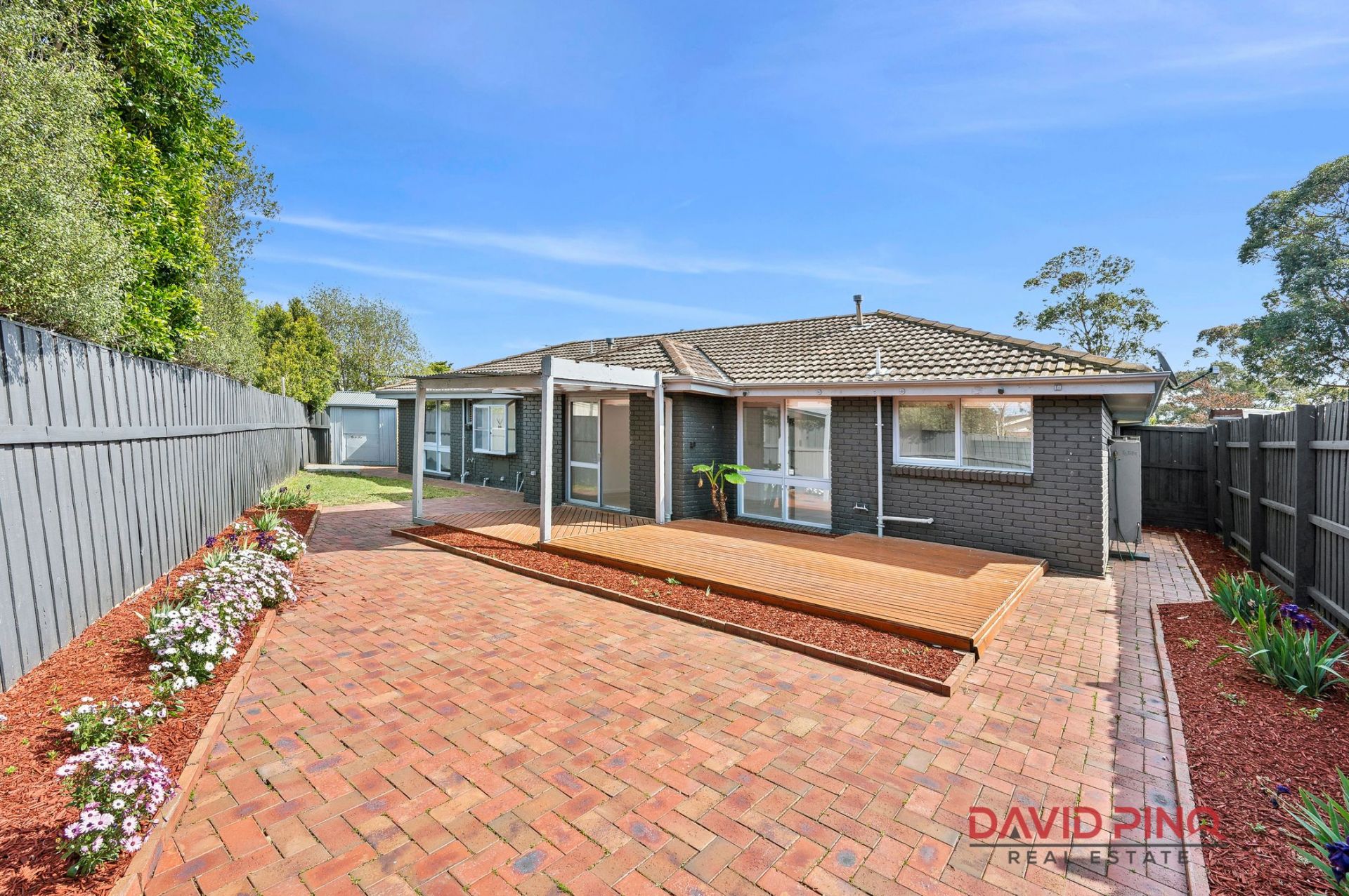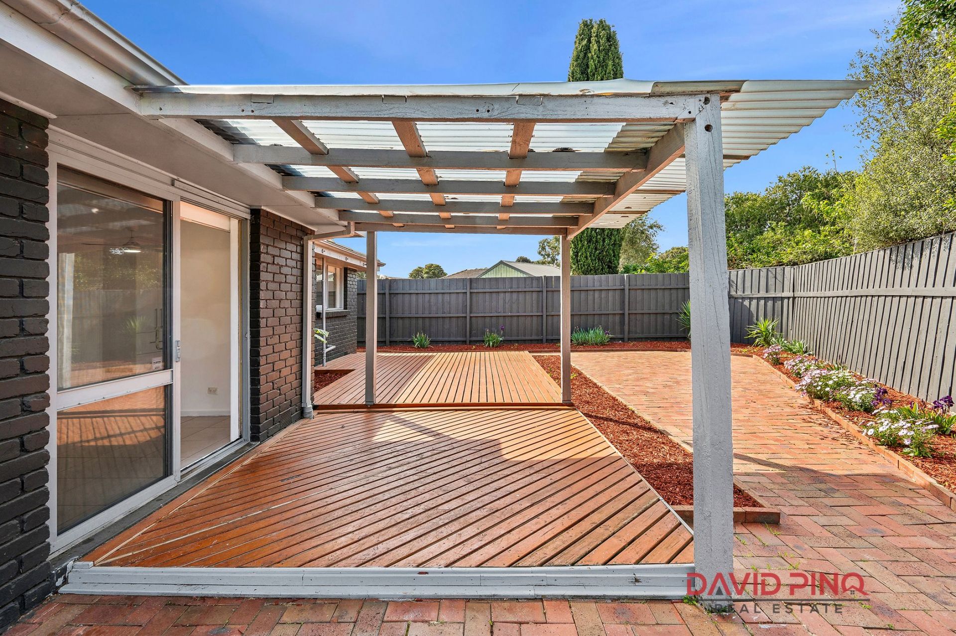 Outside, an alfresco area and a courtyard surrounded by beautifully maintained garden beds create the perfect spot for outdoor entertaining or simply enjoying a peaceful afternoon. Whether it's a barbecue or a quiet family moment, this backyard is designed for both relaxation and fun.